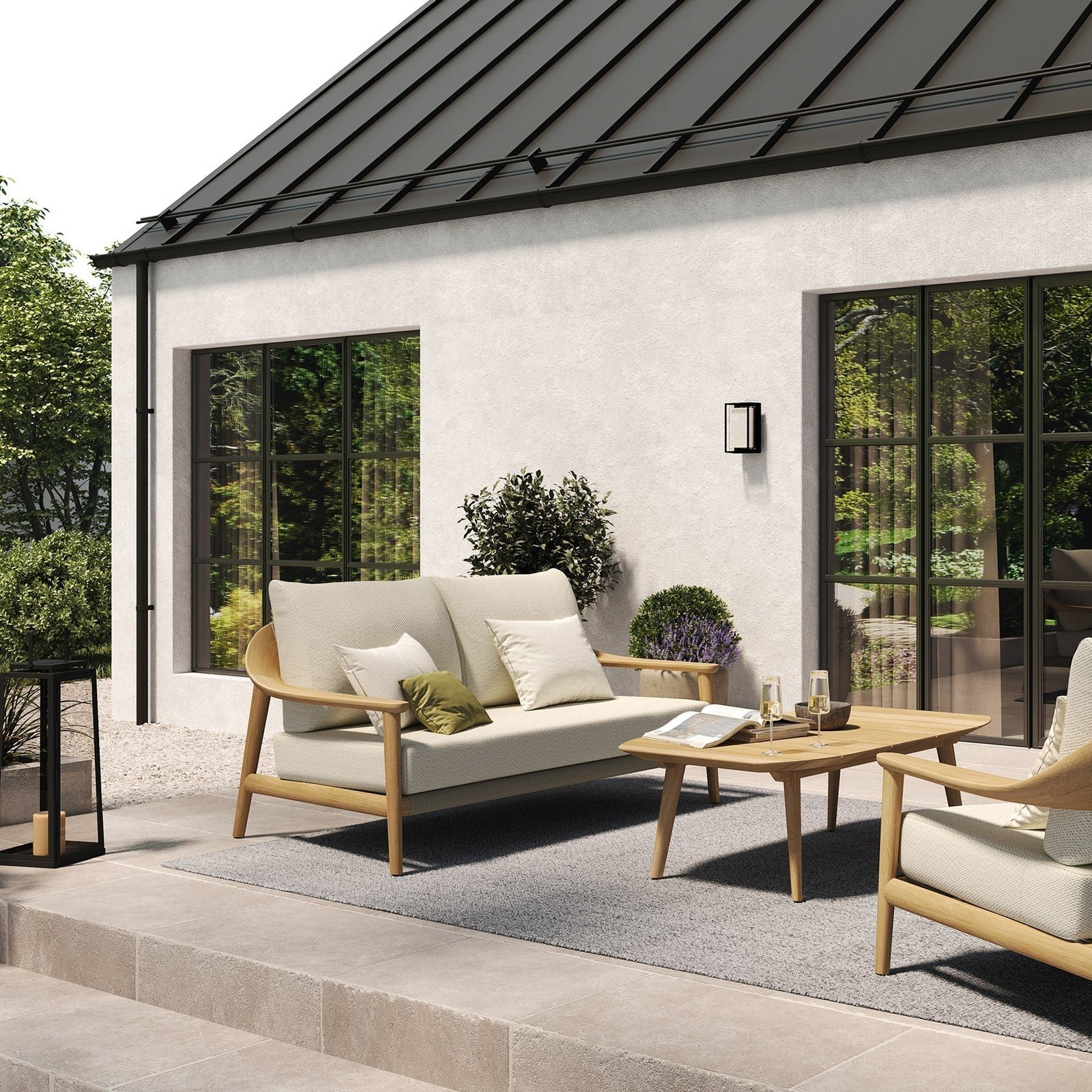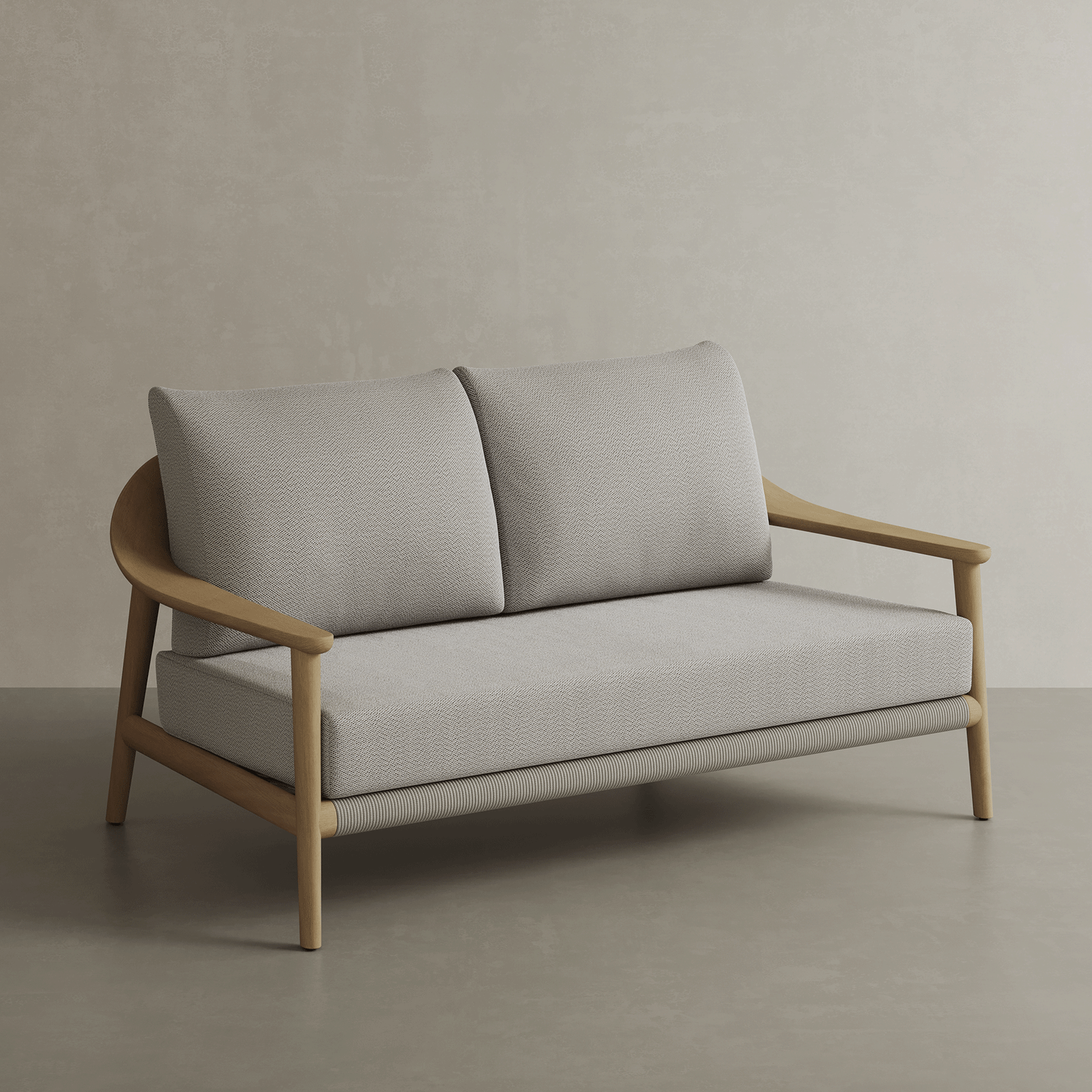 The N1 Two Seater sofa oozes refined simplicity, an inviting retreat crafted with the lightness of the teak and the comfort of Oatmeal Textured Weave fabric cushions. The frame, made from the highest quality teak, reveals the wood’s natural, honey palette, full of gentle grains and organic texture that speaks of serene landscapes and untouched beauty.
