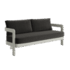 Covered in Shadow Canvas, the cushions present a deep, charcoal hue that speaks to a refined aesthetic, adding a contemporary edge to the chair’s classic lines. This fabric, mirrors the quiet depth of evening shades, brings an element of drama, all while maintaining the collection’s commitment to comfort and endurance. Shadow Canvas is woven from the finest UK fire rated acrylic, promising to confront environmental challenges such as moisture, mildew, and the sun’s relentless rays without yielding. Its robust weave is quick to dry, restoring the chair to its inviting state promptly after a downpour.